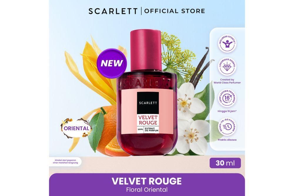 Rekomendasi parfum Scarlett yang paling wangi dan tahan lama yang pertama yaitu Scarlett Extrait De Parfum Velvet Rouge. Varian parfum ini mengusung aroma floral oriental yang memberikan kesan elegan dan berkelas. Parfum ini bisa digunakan oleh laki-laki maupun perempuan. Untuk top notes dari parfum ini yaitu mandarin, galbanum, and ylang. Middle notes tuberose, jasmine, and orange flower. Base notes vanilla, musk, and tonka been. Harga Scarlett Extrait De Parfum Velvet Rouge: Sekitar Rp67.500.