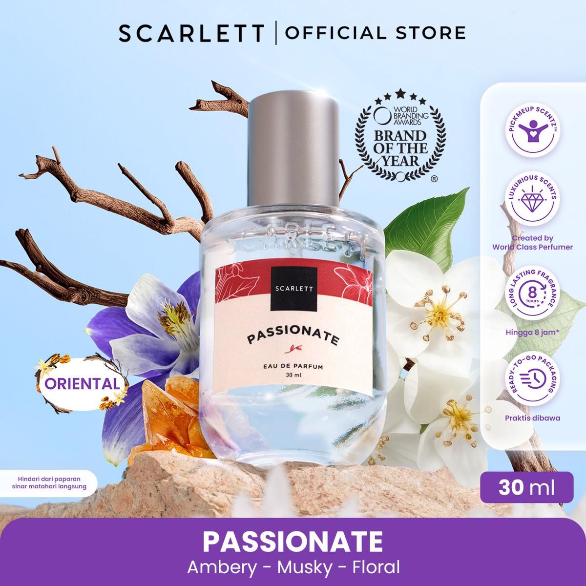 Last but not least, ada Scarlett Eau De Parfum Passionate. Parfum ini hadir dengan teknologi blissful booster scent untuk membuat mood-mu penuh kebahagiaan dan lebih percaya diri. Aroma top notes-nya terdiri dari pear, apple, dan jasmine. Middle notes-nya diisi dengan aroma ambrette, moss, ylang, dan violet leaf. Wangi kemudian ditutup dengan perpaduan wangi dari woody, amber, dan musky. Harga Scarlett Eau De Parfum Passionate: Sekitar Rp62.500.